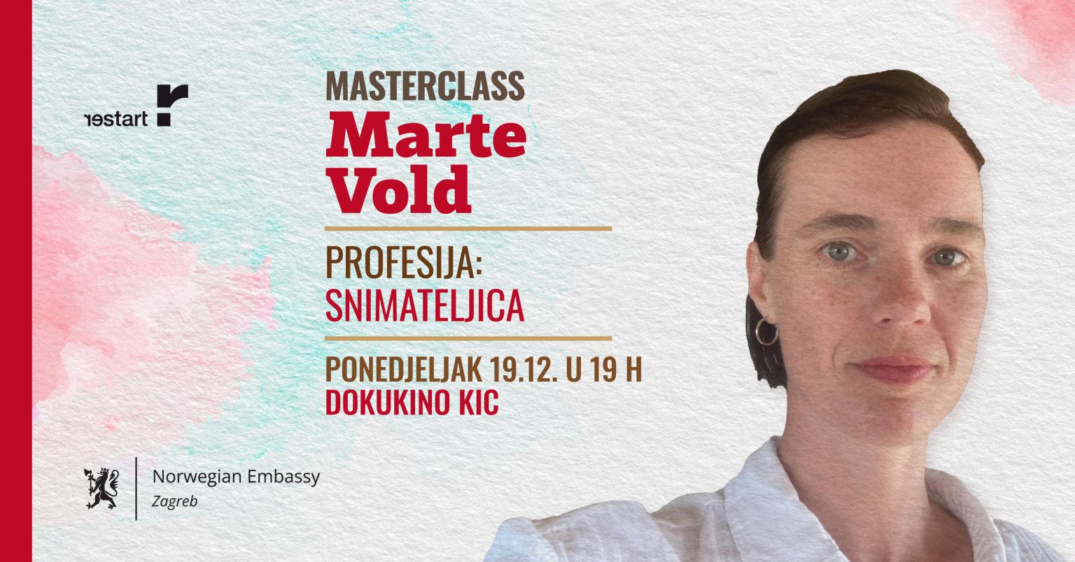 On Monday, 19 December, at 19:00, Dokukino KIC in association with the Embassy of the Kingdom of Norway to the Republic of Croatia introduces the Norwegian cinematographer Marte Vold, who made a name for herself with a series of prominent documentary and fiction film titles. In a masterclass under the title ‘Profession: Cinematographer’, Vold will be speaking about her work as a cinematographer and the use of camera in documentary film, as well as about the underrepresentation of women in cinematography. With the development of technology and the omnipresence of small, flexible digital cameras, it has become increasingly easy to make a documentary film, but also increasingly important what it ‘looks’ like. The role of a cinematographer is, in agreement with the director, to establish the visual language of a film, define the atmosphere and mood that best supports the story to convey. Framing, light and motion are the cornerstones of a cinematographer’s job, however in documentary film these are the most susceptible to unplanned changes, loss of control and needful adaptation. Vold will also reflect on the underrepresentation of women in film industry, particularly visible in the cinematographers’ profession, including Croatia (less than 3 per cent), where women cinematographers extremely rarely get a chance to make a feature fiction film. Since 1990s onwards, only five women cinematographers got this opportunity, and three of them have even been honoured with awards (according to the 2019 data). However, the fact that over the past few years the most interest among new generations in studying at the Department of Cinematography at the Academy has been shown by young women is quite encouraging. The masterclass will be hosted by director Igor Bezinović.